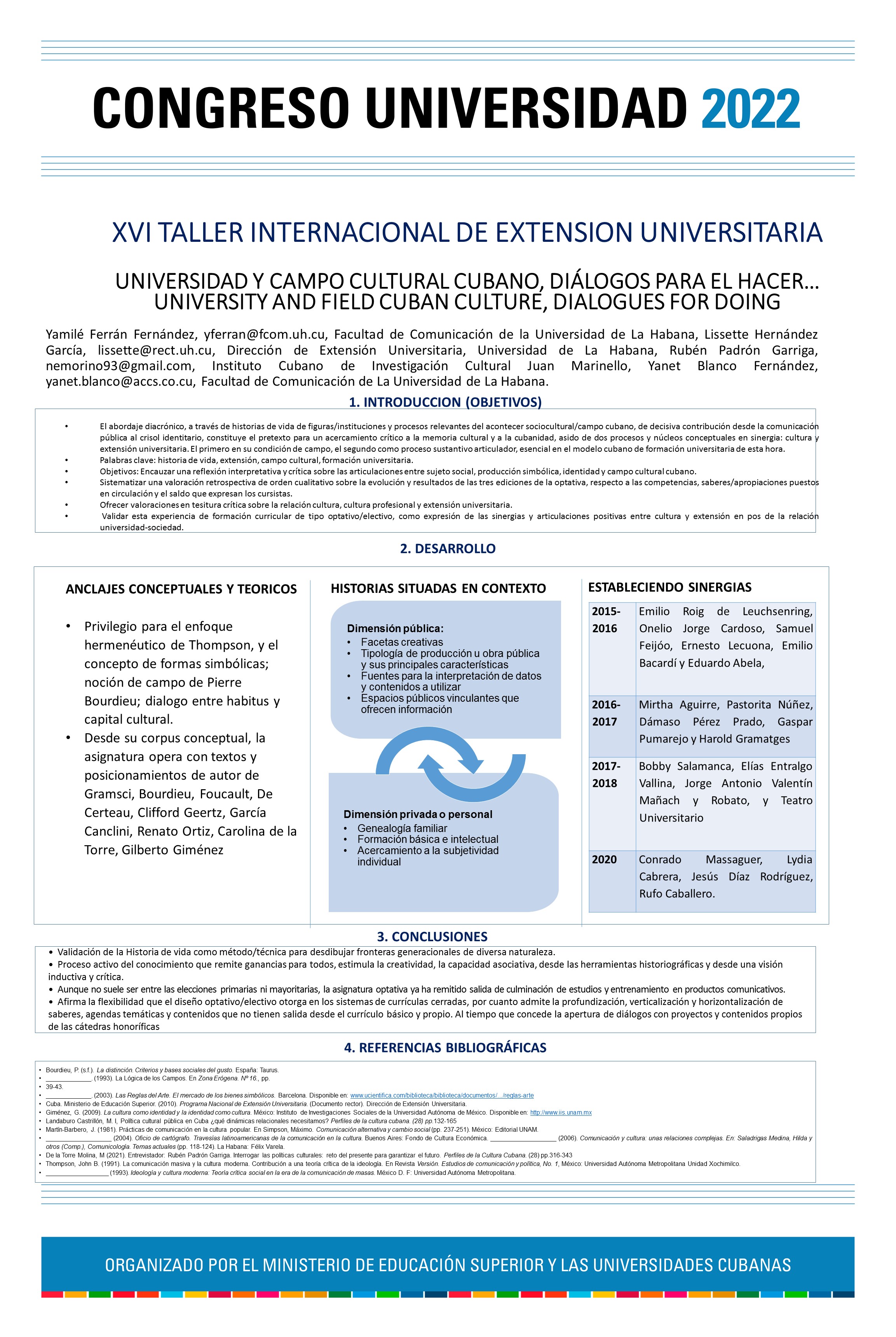 processes of the Cuban sociocultural/field events, of decisive contribution from