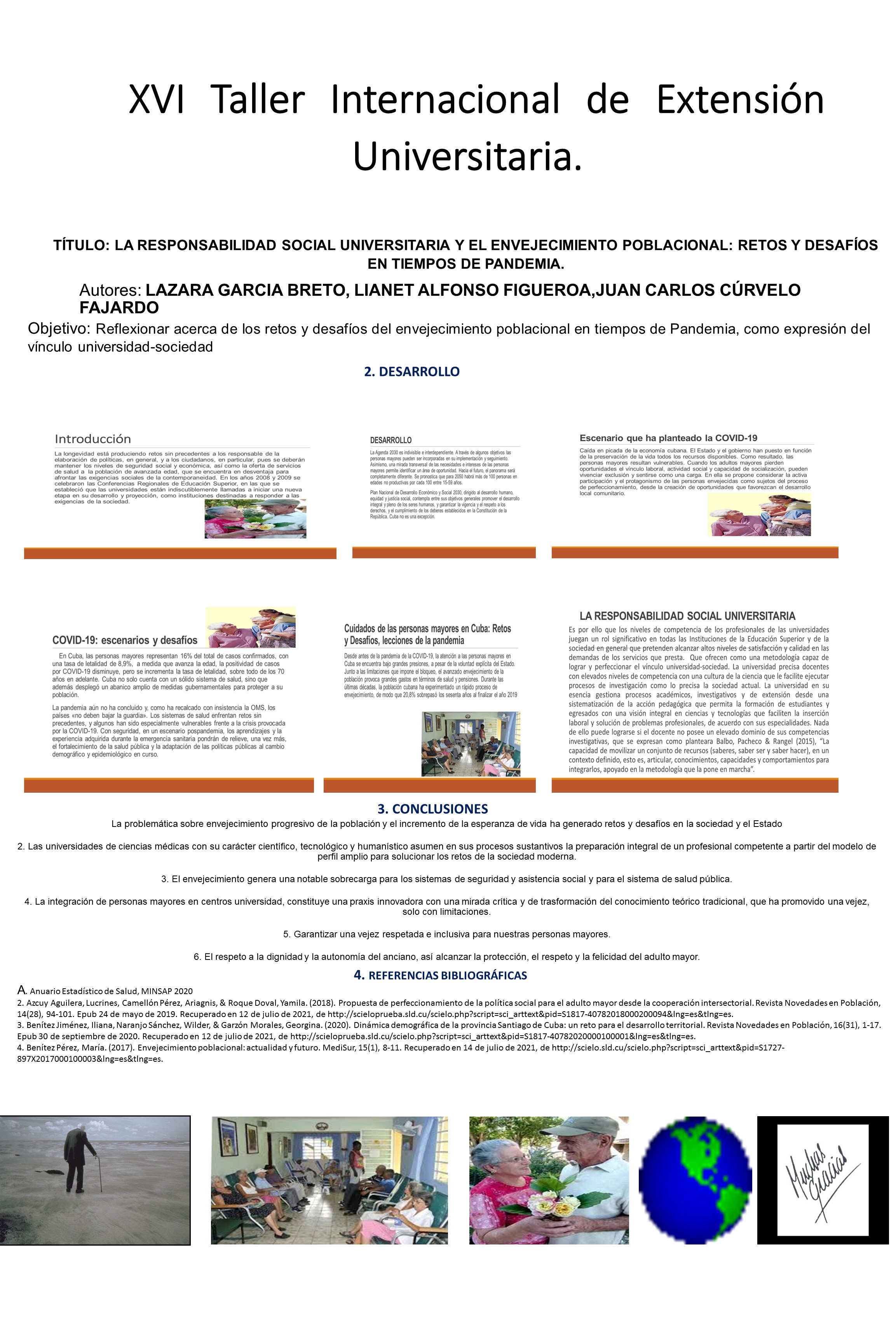Theoretical assumptions about the relationship between society and the university and the relevance of these institutions in research were analyzed in this study. Its objective is to reflect on the challenges of population aging in times of Pandemic, as an expression of the university-society link. Material and methods: a bibliographic review obtained from the virtual health library in INFOMED was carried out, from 2018 to 2020. Results: Where population aging is contextualized as a possibility of inserting in the training of its professionals, the scientific nature, technological and humanistic of Cuban higher education by assuming in its substantive processes the formation of a comprehensive, competent professional, with scientific preparation to accept the challenges of modernity, and with broad humanistic development to live in a society with an aging population. Conclusions: the scientific and technical advances achieved still do not satisfy the needs of an aging population. The investment that governments make in science and technology for social good must be aimed not only at prolonging years of life but also at achieving a satisfactory quality of life in a population that will be aging every day.