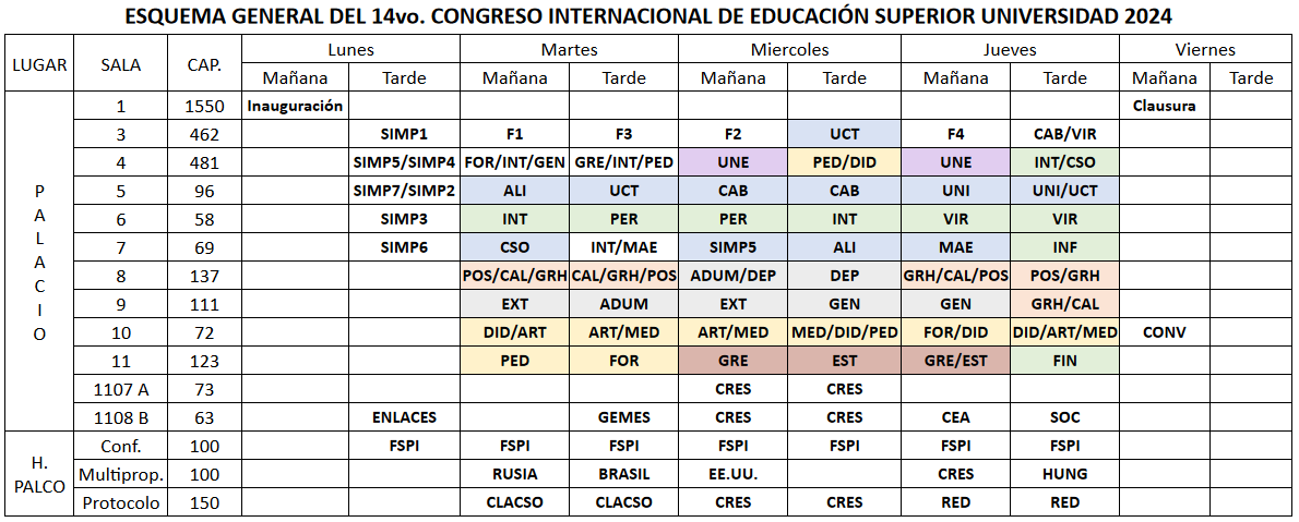 Con el objetivo de dar a conocer los detalles de todas las actividades del Congreso Internacional de Educación Superior Universidad 2024, ponemos a su disposición los siguientes programas: